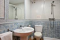 Im ersten Obergeschoss befinden sich beide Schlafzimmer. Das Hauptschlafzimmer ist geräumig und hell, mit einem Doppelbett und großen Schränken ausgestattet. Das zweite Schlafzimmer verfügt über zwei Einzelbetten und einen geräumigen Kleiderschrank, direkt neben dem Hauptbadezimmer. Jedes Detail des Hauses ist mit exquisitem Geschmack dekoriert und übertrifft die Erwartungen an ein typisches Strandhaus.