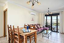 Diese Wohnung ist perfekt für Familien, die einen unvergesslichen Urlaub suchen. Die charmante private Terrasse, die direkt vom Wohnzimmer aus zugänglich ist, zusammen mit dem Solarium, ebenfalls völlig privat und fern von neugierigen Blicken beim Sonnenbaden, ist möbliert, damit Sie Frühstück, Mittag- oder Abendessen im Freien genießen können, mit Blick auf die gepflegten Gärten und erfrischenden Pools des Komplexes. Im Inneren der Wohnung finden Sie zwei gemütliche Schlafzimmer, jedes mit Einbauschränken, um Ihre Sachen organisiert zu halten. Das Wohn-Esszimmer, ausgestattet mit Klimaanlage, ist ein idealer Ort für Familientreffen oder Entspannung nach einem erlebnisreichen Tag. Die separate Küche ist komplett ausgestattet, einschließlich Geschirrspüler für Ihren Komfort. Das Badezimmer ist perfekt, um sich nach einem Tag am Strand oder Spaziergang entlang der Promenade frisch zu machen. Außerdem verfügt die Wohnung über kostenloses Glasfaser-WLAN, damit Sie immer verbunden bleiben.
