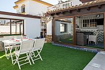 Das Hauptgeschoss umfasst außerdem ein spektakuläres Hauptschlafzimmer mit eigenem Bad, das maximalen Luxus und Komfort bietet. Zusätzlich finden Sie einen gemütlichen Wohnraum mit Kamin und einem Doppelschlafsofa, ideal für eine warme und entspannte Atmosphäre. Es gibt auch eine praktische Gästetoilette und zwei charmante Veranden: eine vordere, dekoriert mit eleganten Korbmöbeln, und eine hintere, die mit Aluminium geschlossen ist und zusätzliche Vielseitigkeit und Komfort bietet. Dieser letzte Raum verfügt über eine Klimaanlage, einen Fernseher und eine zusätzliche Küche, die sich perfekt für Zusammenkünfte und besondere Anlässe eignet. Der Außenbereich ist mit einem Grill ausgestattet, ideal für Mahlzeiten im Freien mit Familie oder Freunden.