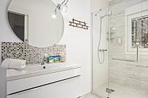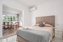Die erste Etage steigert das Erlebnis von Komfort und Exklusivität mit einem großzügigen Hauptschlafzimmer, das eine große Terrasse oder Leseecke umfasst – perfekt zum Entspannen. Zusätzlich gibt es ein komplettes Badezimmer und zwei weitere Schlafzimmer, die jeweils mit zwei Einzelbetten ausgestattet sind, um maximalen Komfort für alle Gäste zu gewährleisten.