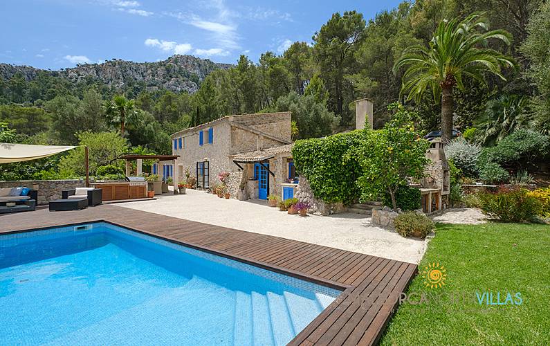 Dieses farbenfrohe Landhaus befindet sich in einer privaten Zone zwischen Blumen und Mandelbäumen mit außergewöhnlichen Bergblicken, einem großen Garten, einem privaten Swimmingpool und einem Grillplatz mit verschiedenen Zonen zum Entspannen und zum Genießen des wahren Mallorcas.