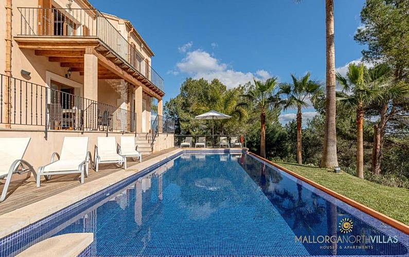 Die Finca verfügt über einen spektakulären privaten Pool, umgeben von einem üppigen Garten, der zur Ruhe einlädt. Darüber hinaus bietet sie geräumige Terrassen und Balkone, die perfekt sind, um die Sonne und die Ruhe der Umgebung zu genießen. Für ein noch exklusiveres Erlebnis können Sie sich in den beiden Whirlpools entspannen, einer davon klimatisiert.