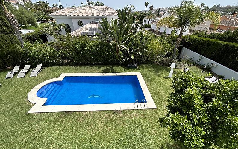 Villa Maisa ist eine luxuriöse freistehende Villa in Nueva Andalucía mit 2 Etagen, einem riesigen Garten mit privatem Pool und Garage für bis zu 5 Autos, auch privat.