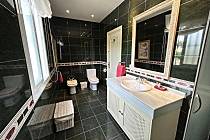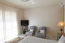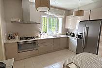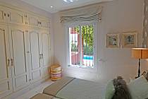 Im Erdgeschoss gibt es eine große, voll ausgestattete Küche, ein elegantes Wohn-Esszimmer mit direktem Zugang zum Garten und 2 Schlafzimmer: eines mit einem Doppelbett und großen Kleiderschränken und das andere mit 2 Einzelbetten, sehr hell und mit großen Kleiderschränken. Im Erdgeschoss gibt es auch ein komplettes Badezimmer mit Dusche und eine Toilette.